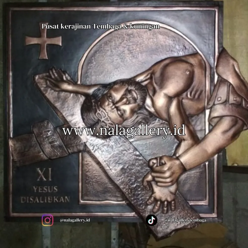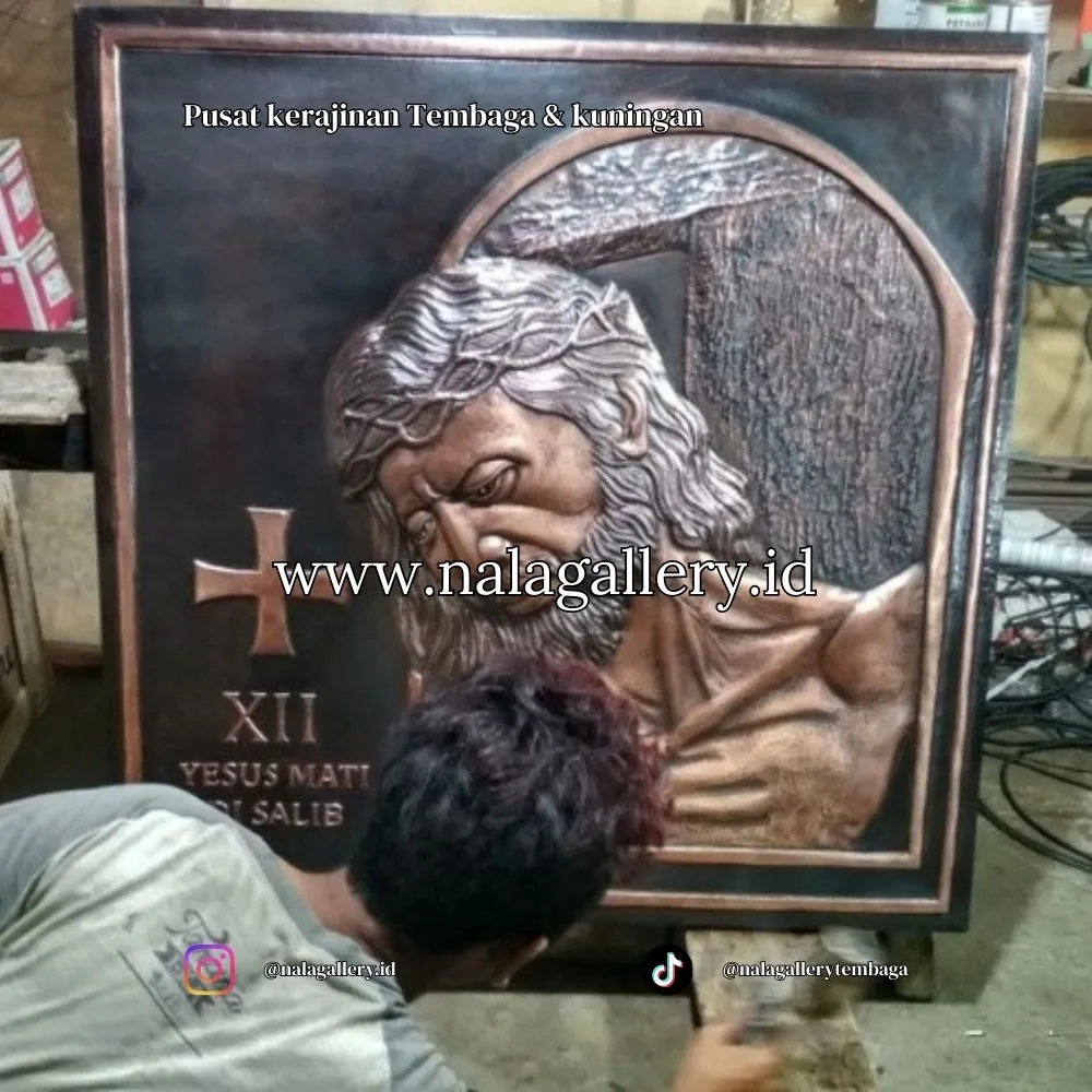 Relief jalan salib di yang di produksi pengrajin tembaga Nala Gallery selalu mengutamakan kualitas bukan kuantitas karena produk ini adalah salah satu produk religi yang memerlukan detail dan presisi tinggi agar tersampaikan arti dari setiap setnya.