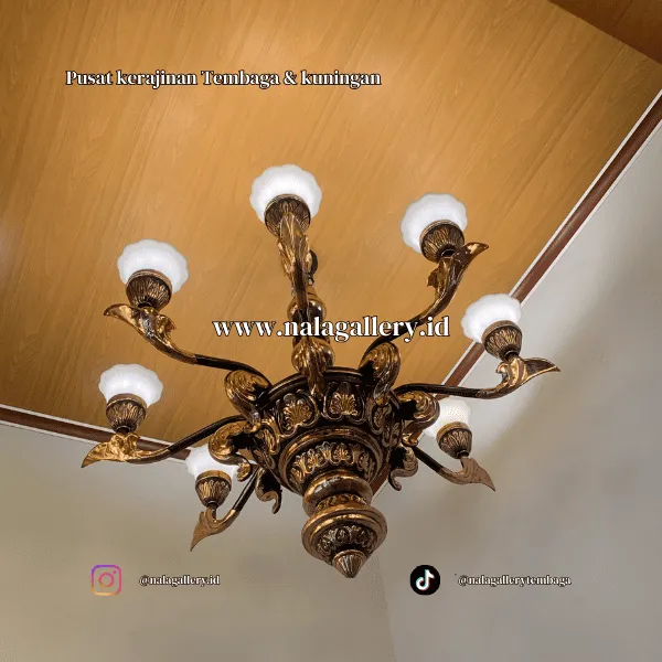 Lampu tembaga dari Nala Gallery ini bisa dibuat menyesuaikan ukuran ruangan custom sesuai keinginan. Proses finishing juga fleksibel, mulai dari mengkilap, doff, hingga patina antik yang memberi kesan vintage. Pilihan ini memungkinkan lampu cocok di rumah pribadi maupun proyek interior komersial.