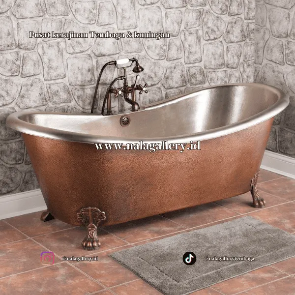 Bathtub berbahan tembaga dan kuningan bukan sekadar perlengkapan mandi. Banyak orang memilihnya karena bentuknya yang artistik dan kesan mewah yang langsung terasa saat masuk ke ruang mandi. Model seperti ini sedang banyak dipakai untuk hunian modern, resort, hingga villa premium. Nala Gallery memproduksinya secara handmade, satu–per–satu, sehingga hasilnya jauh lebih personal dan punya sentuhan seni yang tidak dimiliki produk pabrikan biasa.