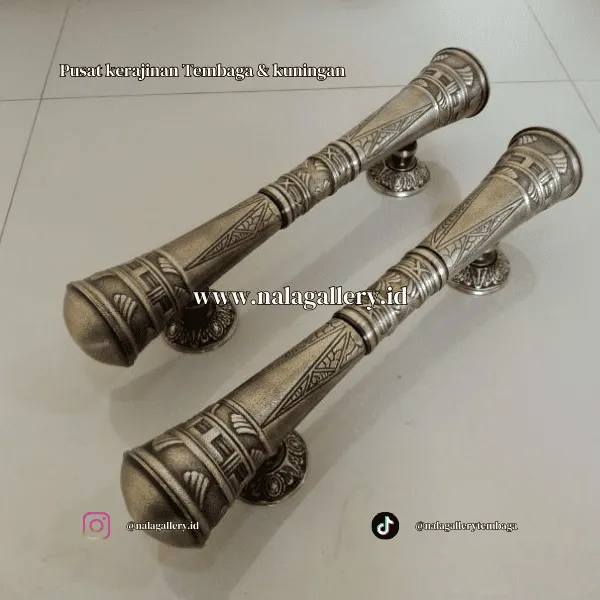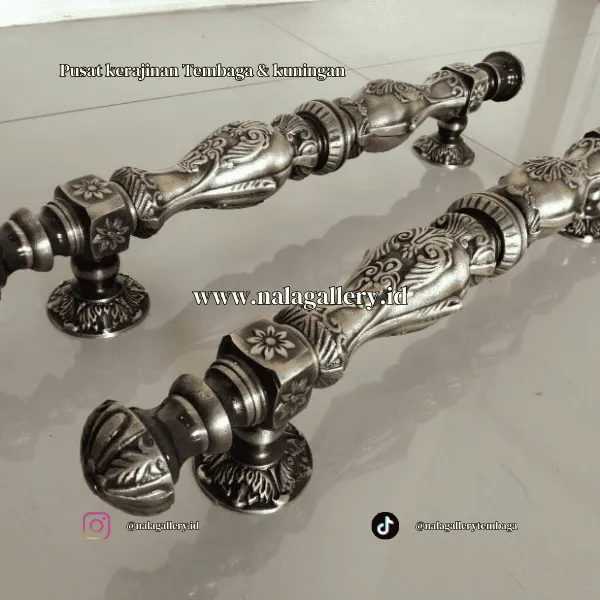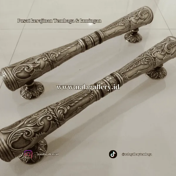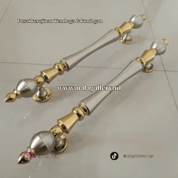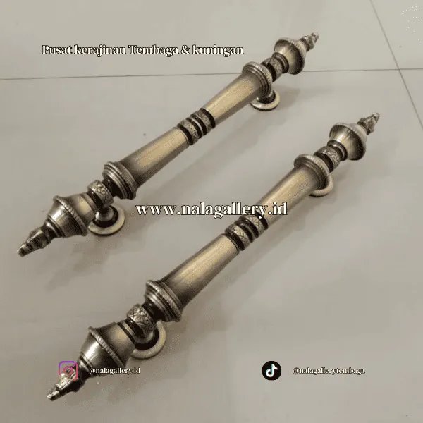 Handle berbahan kuningan juga menjadi pilihan menarik untuk kamu yang peduli detail ornamen arsitektur. Bentuknya bisa minimalis lurus, bisa juga lebih berlekuk dengan ukiran etnik, atau bahkan model klasik yang tebal dan berwibawa. Ketika dipasang pada pintu kayu jati, ulin, merbau, atau finishing duco modern, hasilnya langsung memunculkan nuansa mewah tanpa harus berlebihan. Ia bekerja sebagai aksen kecil yang mempercantik tampilan secara keseluruhan.