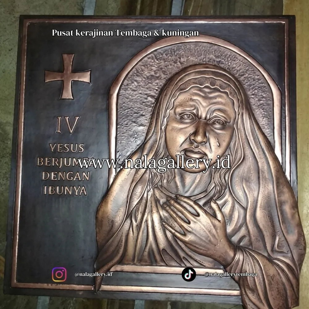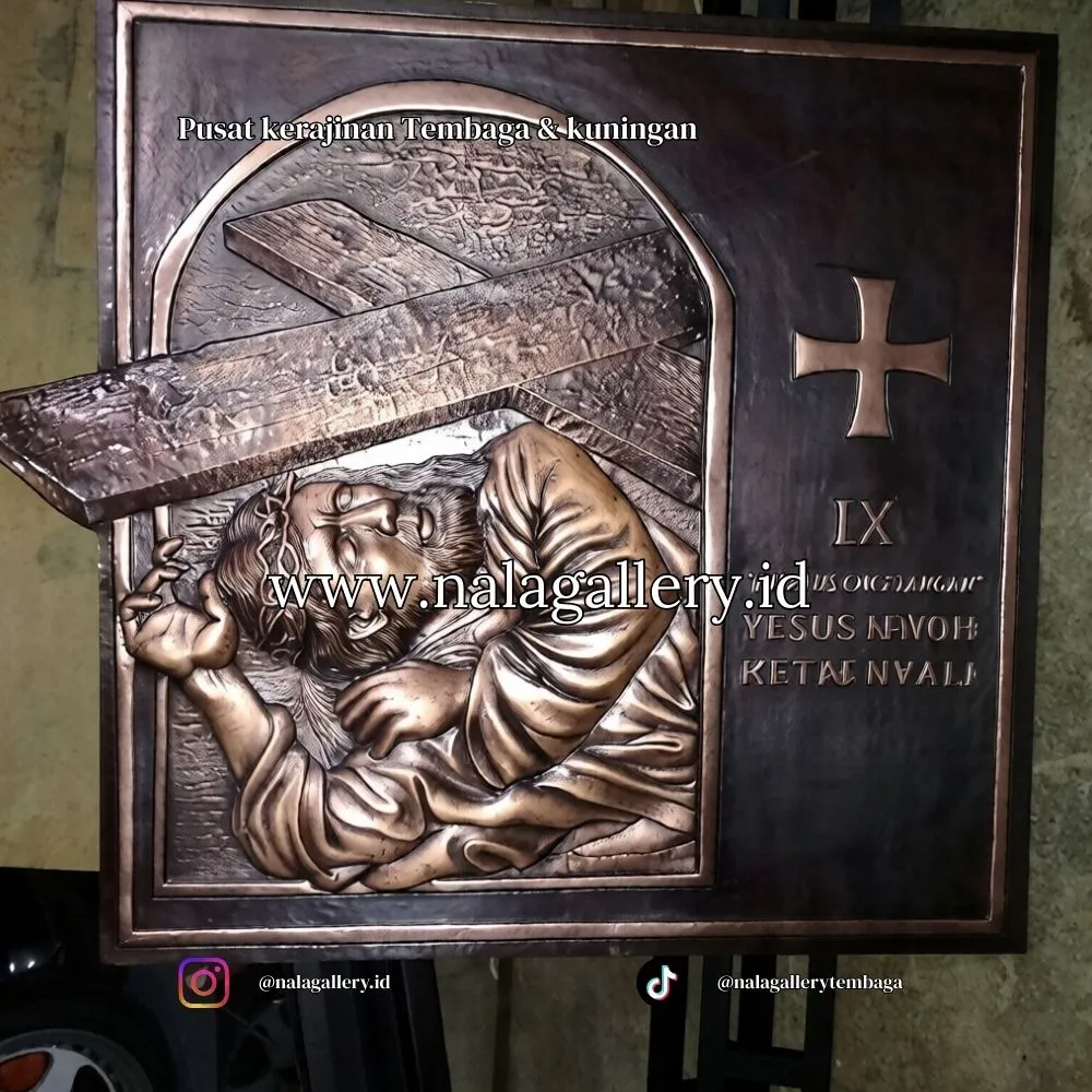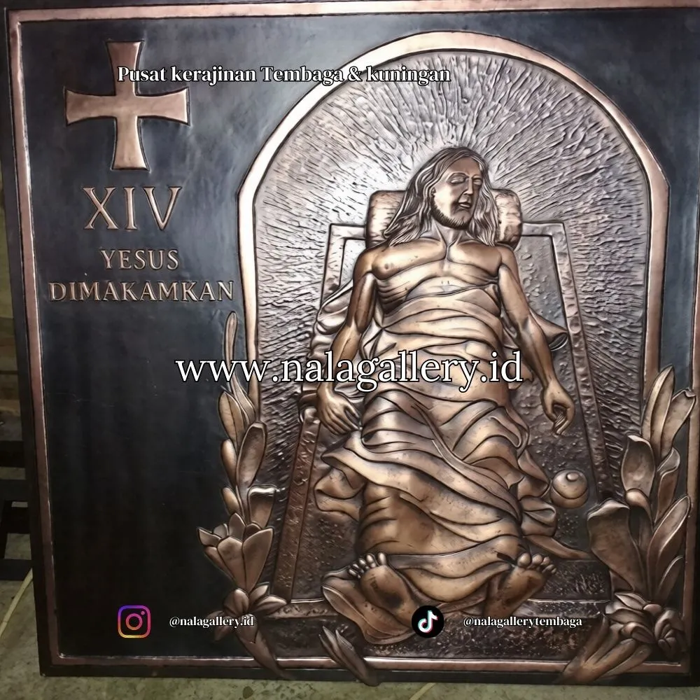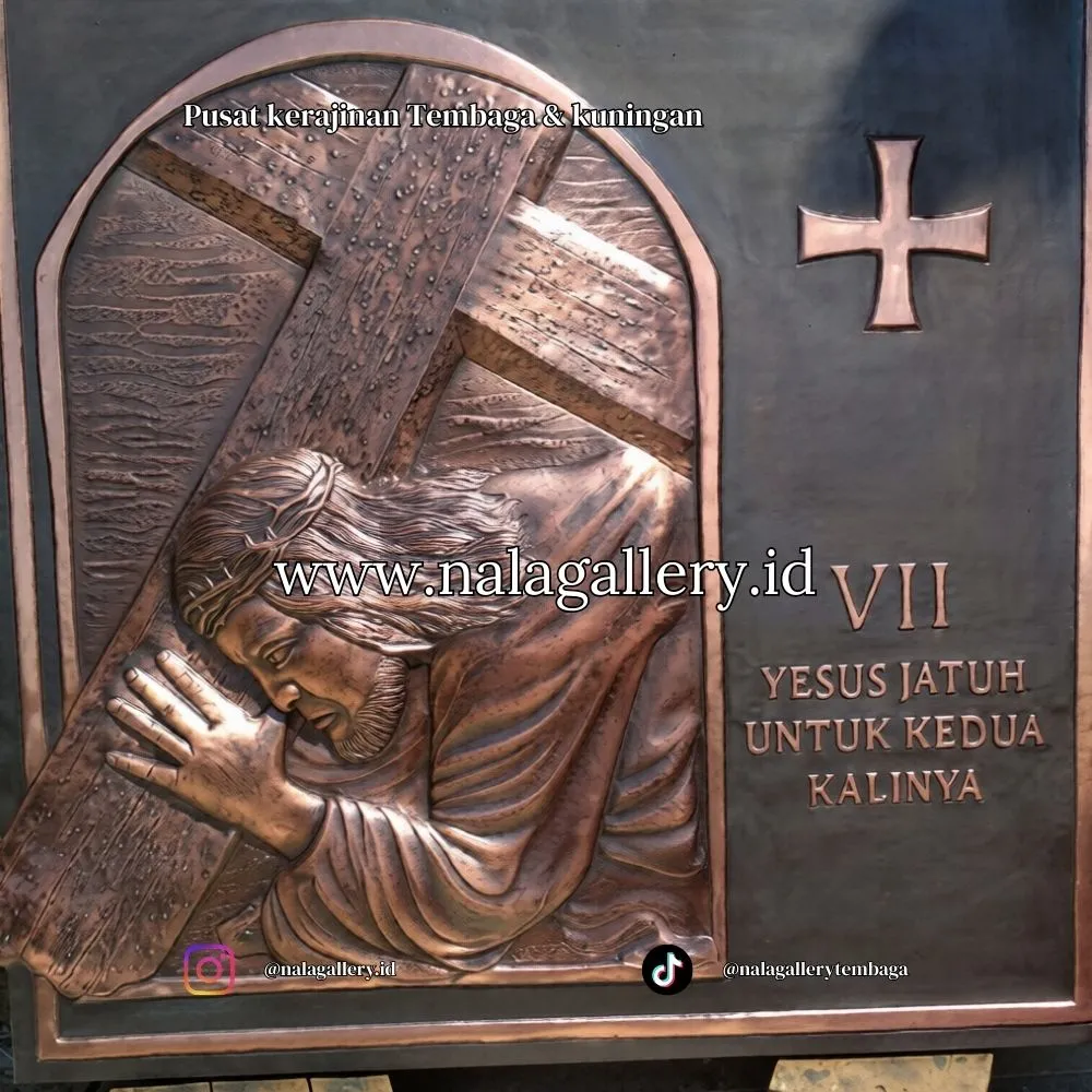 Relief jalan salib bahan tembaga menjadi salah satu pilihan yang sangat cocok untuk dekorasi gereja katolik. Bahan tembaga dan kuningan di pilih karena memiliki keunggulan yang sangat tinggi di bandingkan dengan bahan lainnya di kelasnya.