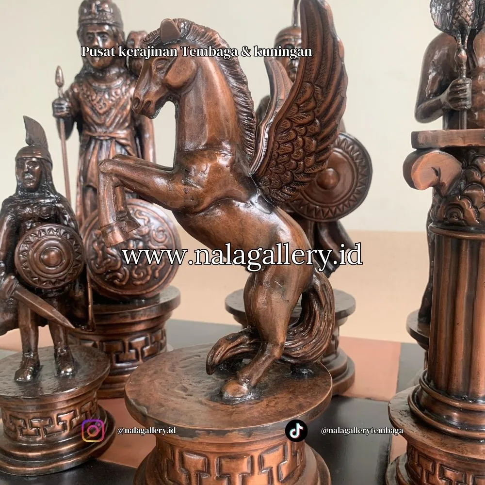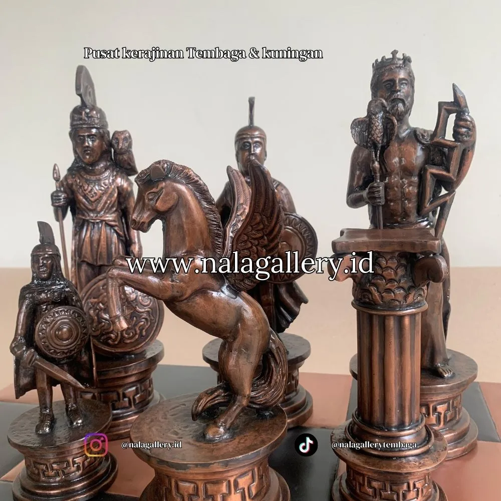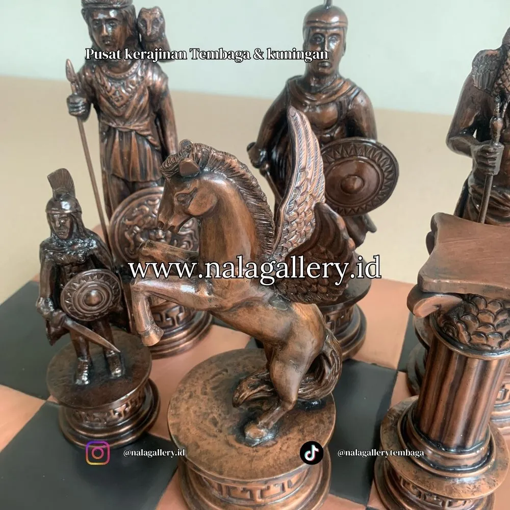 Pengrajin tembaga nala gallery memberikan sebuah produk dari bahan tembaga dan kuningan berupa miniatur catur yang cocok untuk di jadikan koleksi seni di ruang kerja, kantor, rumah pribadi, etalase seni. Miniatur patung tembaga nala gallery menggunakan bahan premium yaitu logam tembaga dan kuningan yang tidak di ragukan lagi kualitas dan ketahanannya selama puluhan tahun terhadap cuaca.